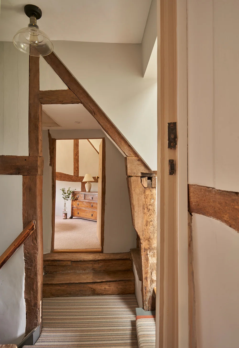 A 16th-century farmhouse with a new oak-framed extension needed unifying into one cohesive home. The owners wanted to honour the building's heritage while creating contemporary living spaces that captured countryside views. The focus was on achieving seamless flow between old and new areas.