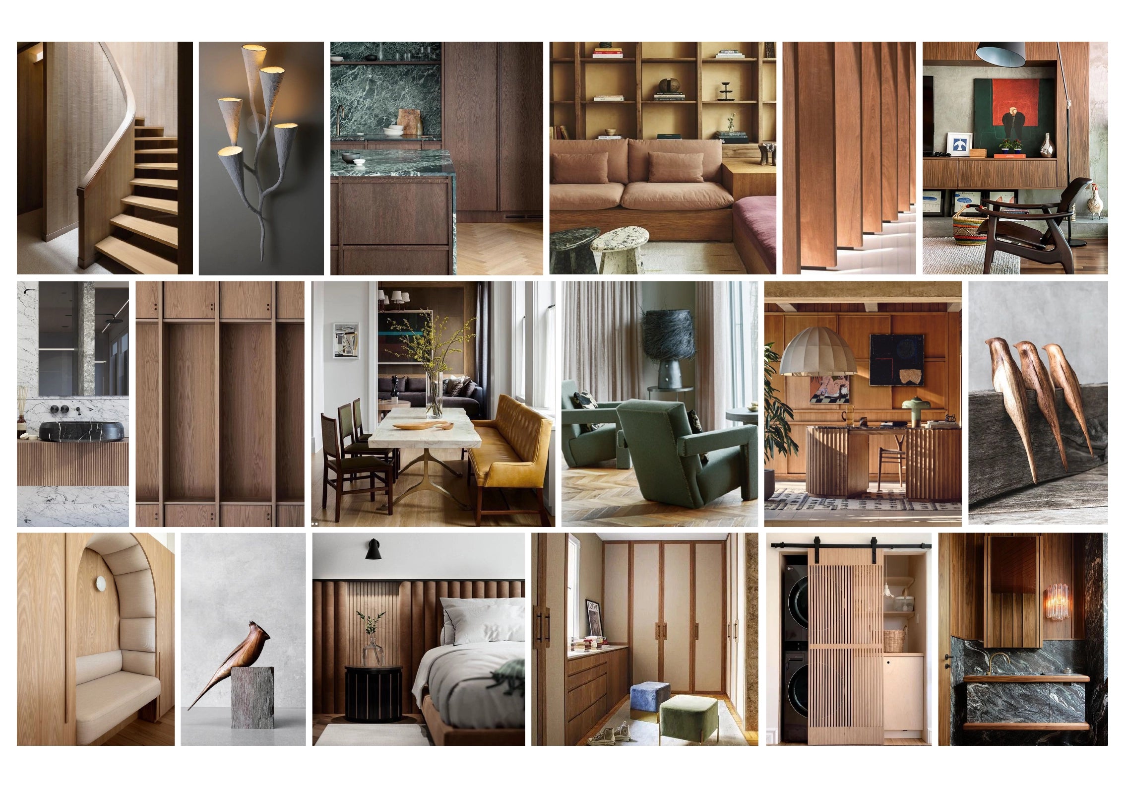 Our design scheme celebrated classic mid-century elements while avoiding pastiche. The carefully curated palette featured rich walnut and teak tones, accented by deep greens, burnt orange and mustard. Geometric patterns and clean lines would have created visual interest throughout, while brass details and authentic vintage pieces were chosen to add character and warmth.