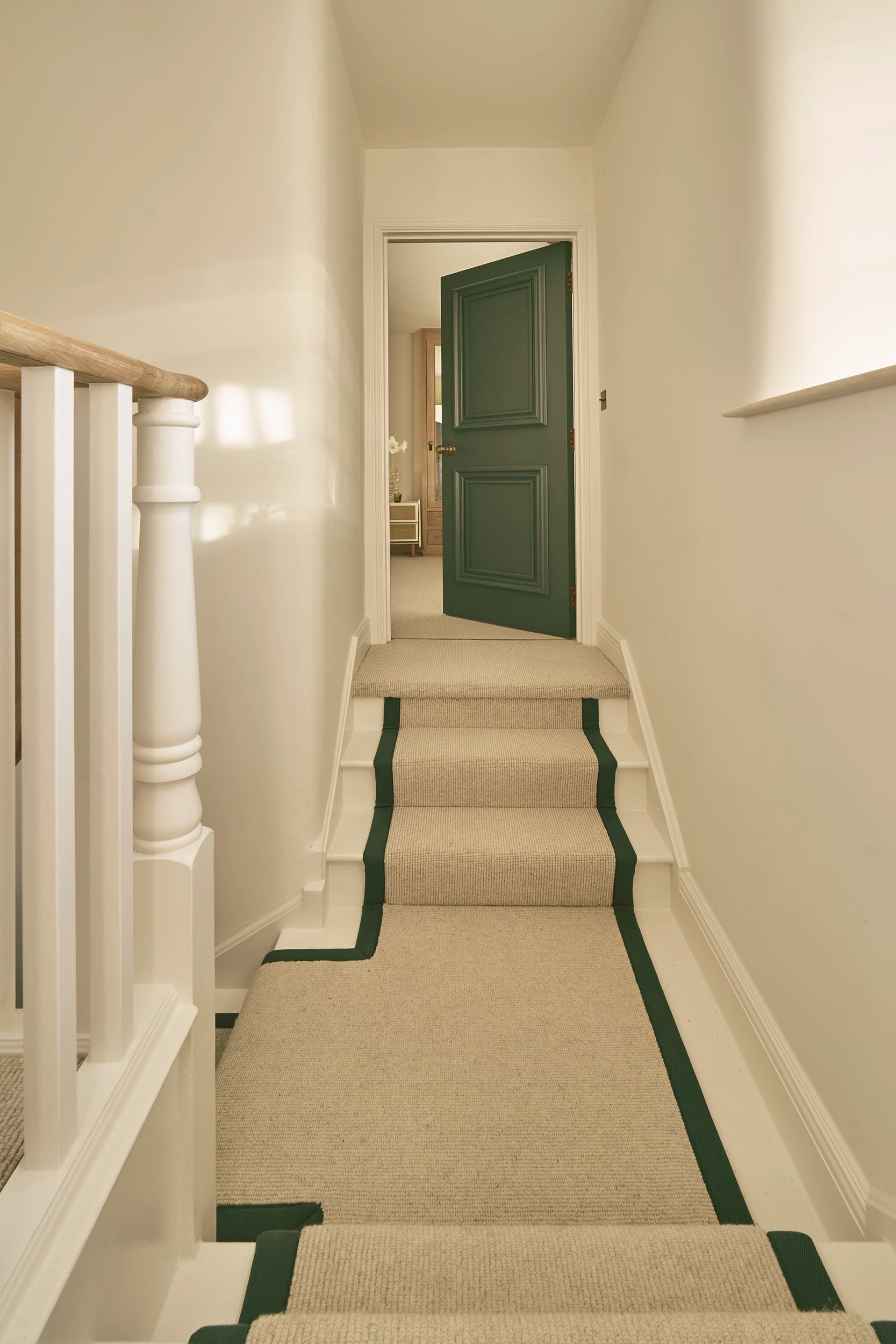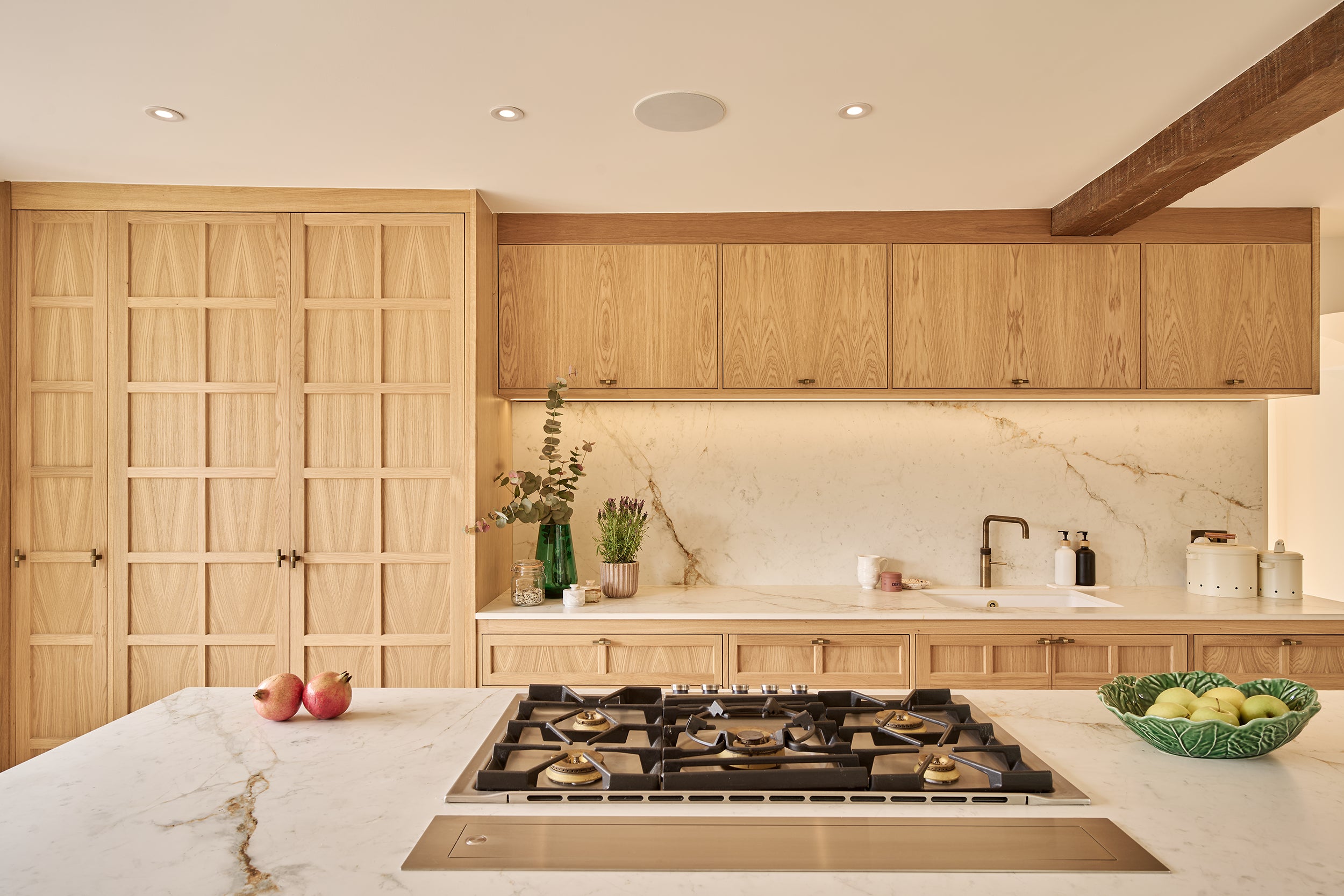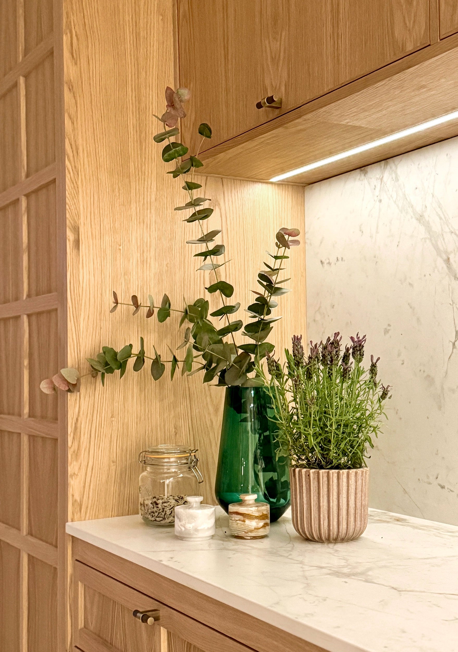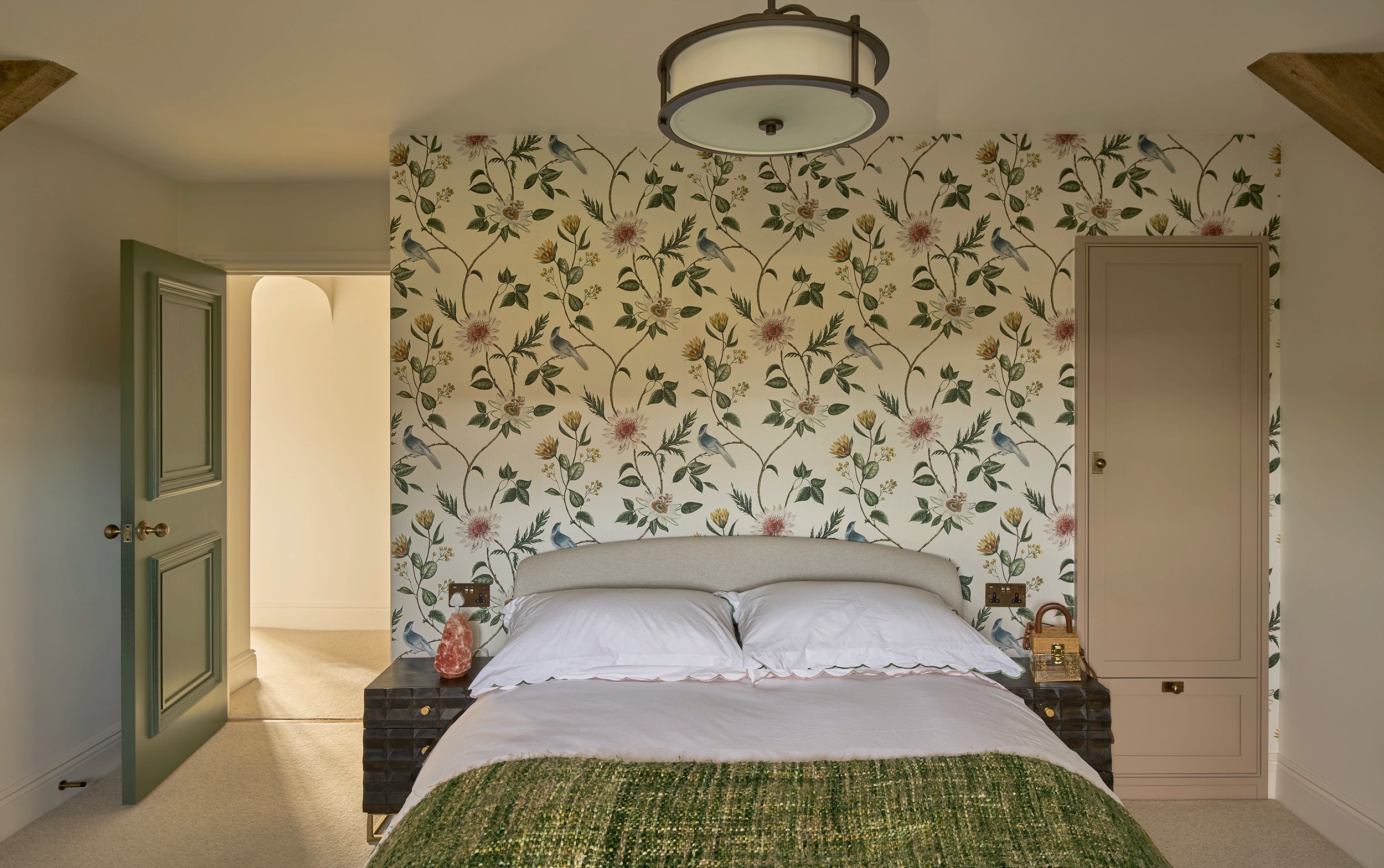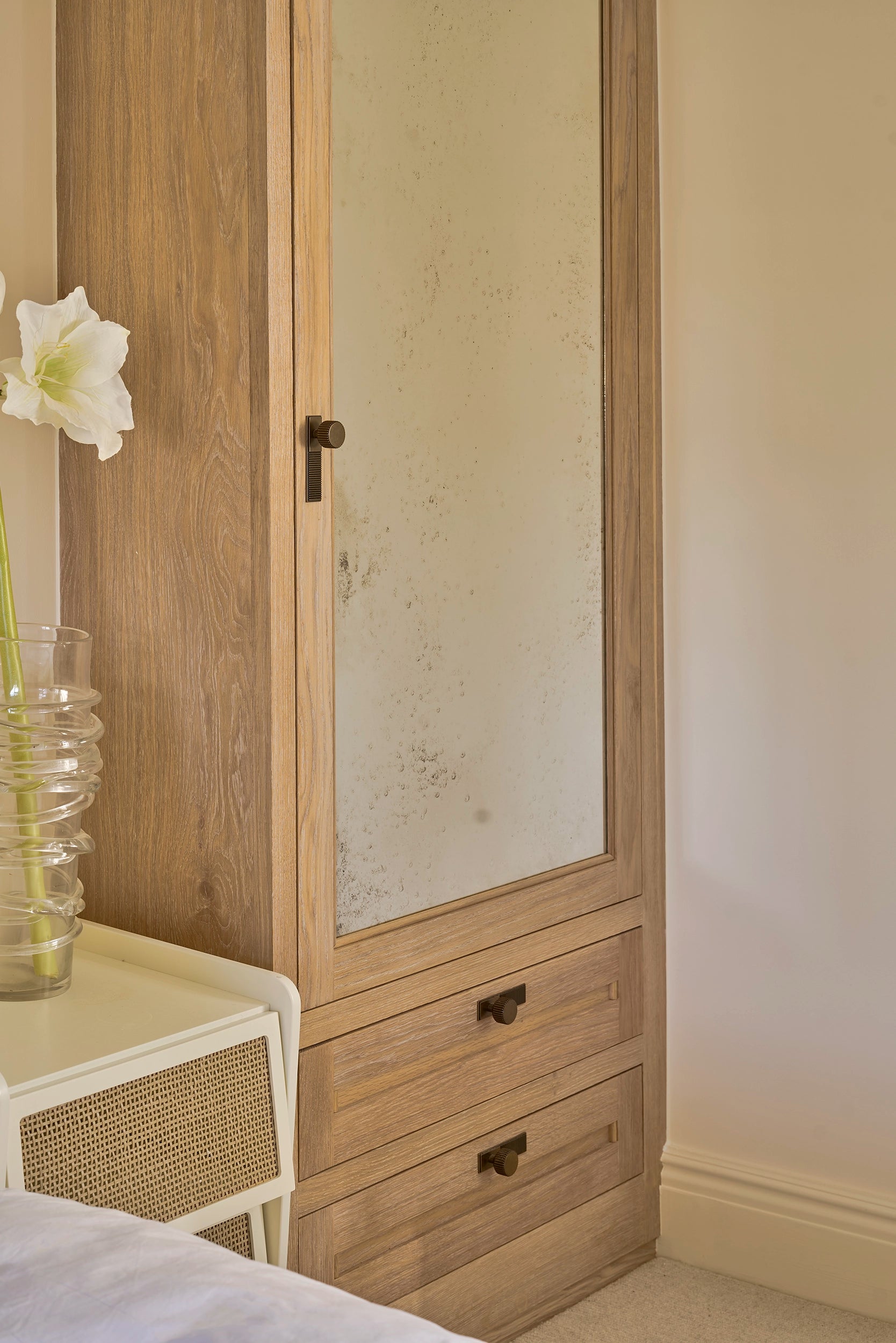 We developed every element of the transformation. Combining modern farmhouse and bohemian styles, from traditional ironmongery to contemporary lighting solutions, each choice was carefully considered to bridge rustic charm with modern luxury. Our joinery features honey-coloured oak and rustic rattan to complement the natural stone and moulded doors to gentrify the architecture and give a nod to our clients' previous London life.