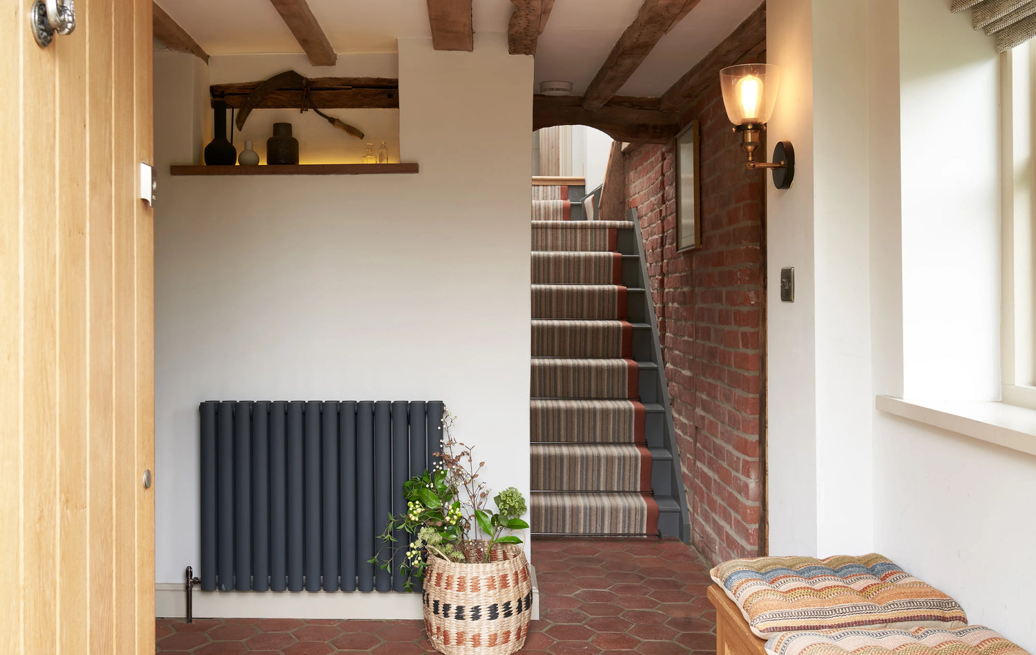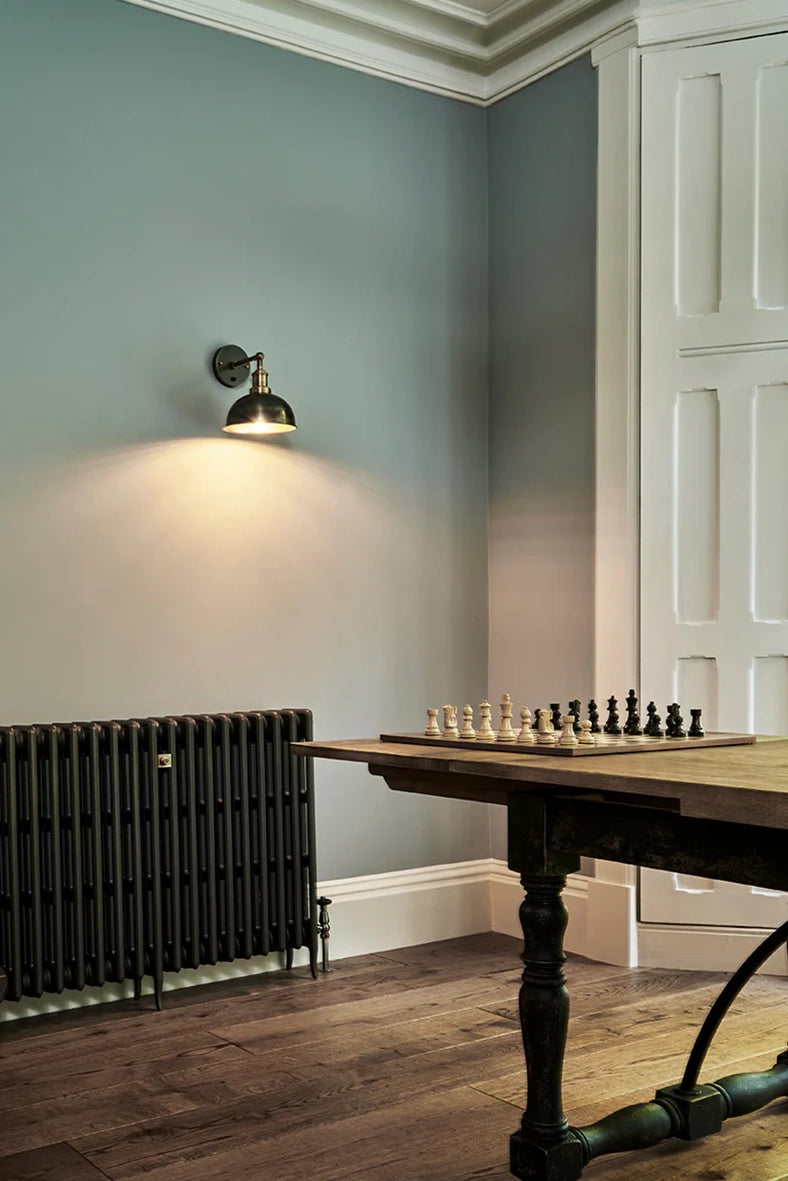 The home office required more extensive restoration, beginning with crafting custom shutters to match those preserved in the snug. We centred the room around an extended dining table that serves as both workspace and multipurpose surface. A reading corner provides a quiet spot for reflection, while aged-oak flooring and cast-iron radiators merge period authenticity with modern performance.