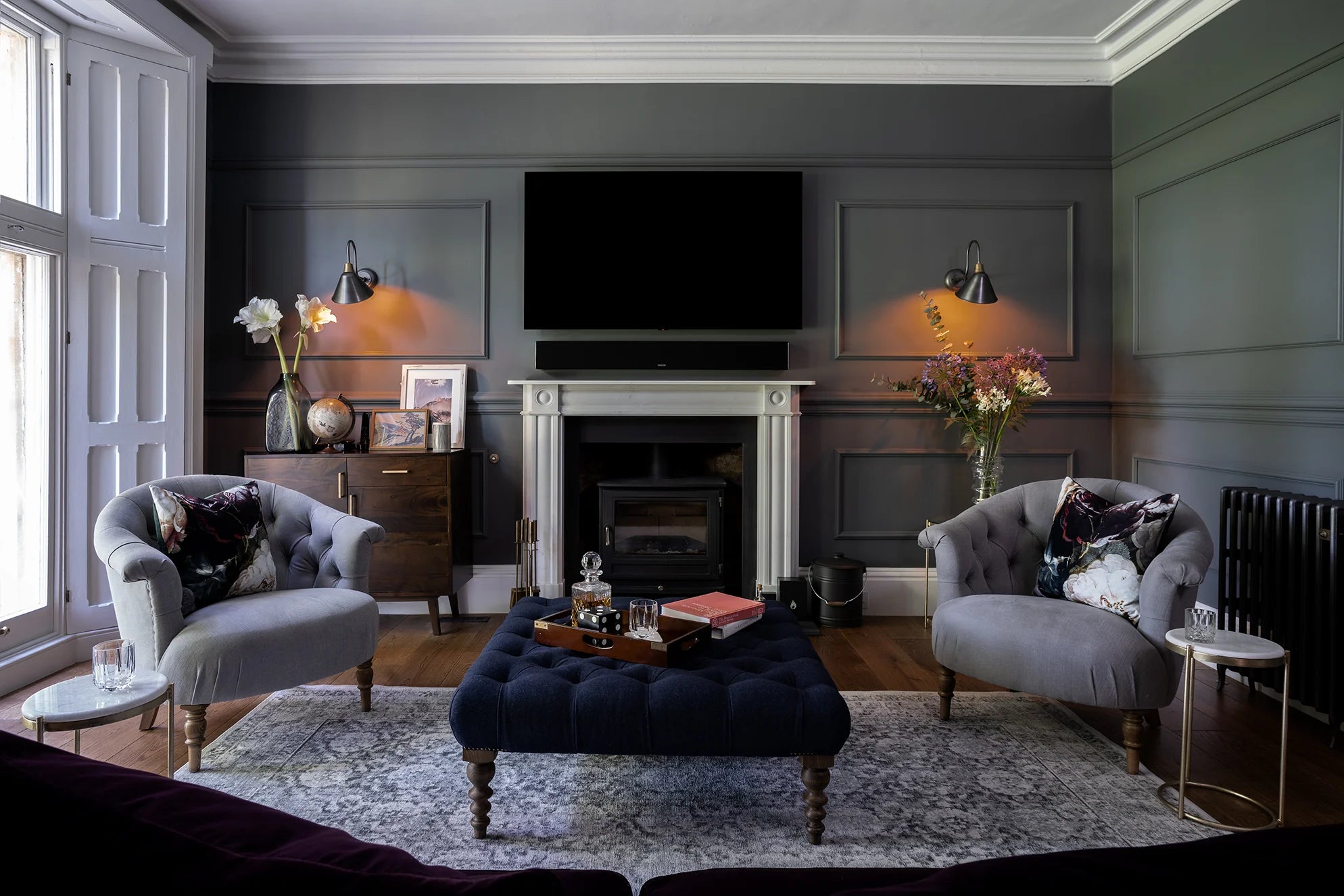 Two carefully restored rooms that honour their Victorian heritage while meeting every modern need. The owners now enjoy spaces that feel both authentic and alive - where evening cocktails are served in front of a crackling fire, and work is conducted beneath restored shutters.