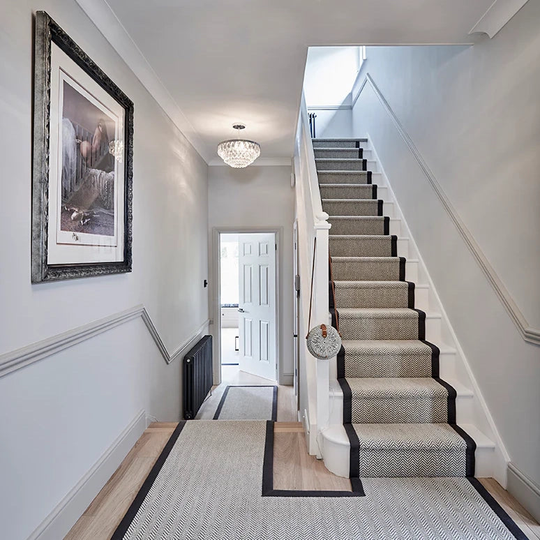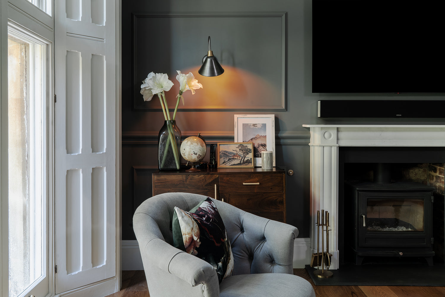 Playful elements appear in carefully chosen details - striking stripes in upholstery and wall treatments bring energy, while jungle-inspired botanical prints and statement houseplants add exotic touches. Every specification, from ironmongery to light switches, was selected to complement both mid-century style and contemporary needs.